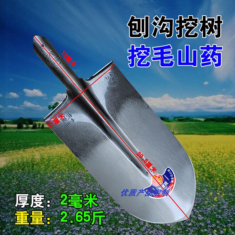 Pointed shovel extra-large shovel throwing planing hairy yam digging trenches, planting trees, turning soil and digging farmers' household all-manganese steel shovel