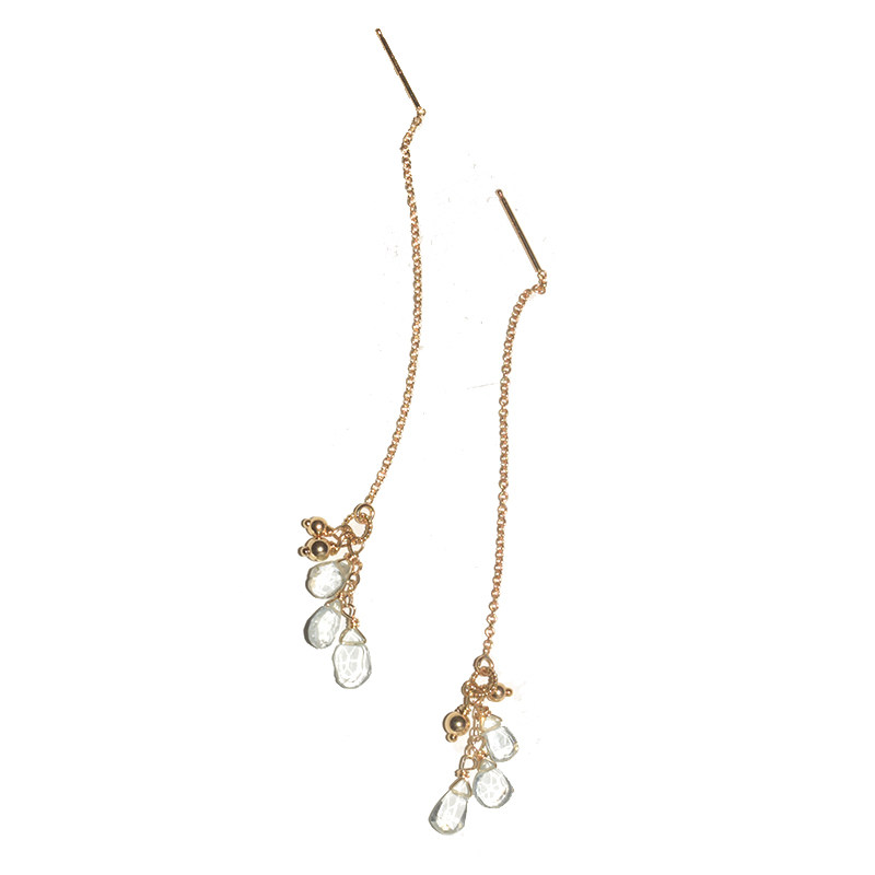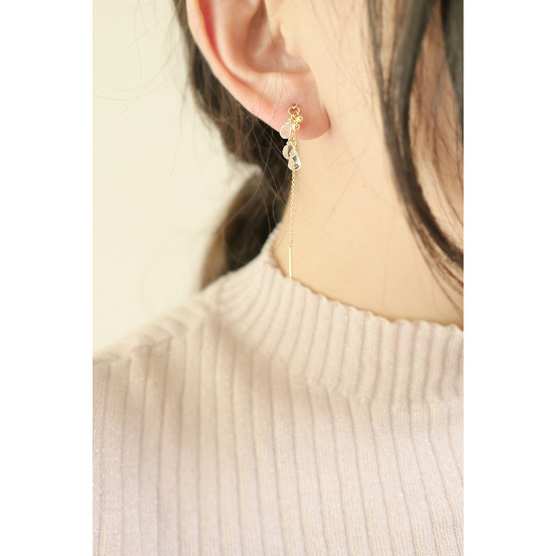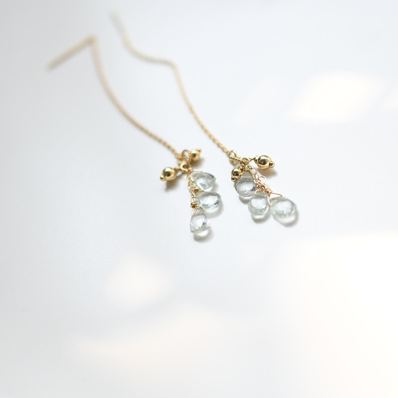 Ice Feather-Three-in-one Grass March Birthstone Natural Aquamarine Imported 14k Gold-Infused Tassel Elegant Earrings