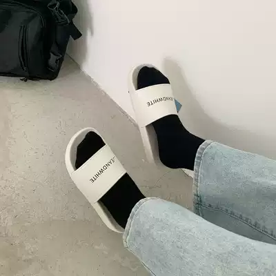 Korean version of outdoor home ins tide flat letter student Net red slippers female trend indoor soft bottom wear