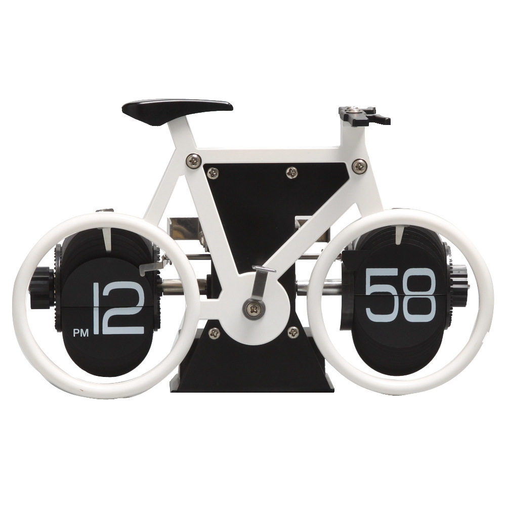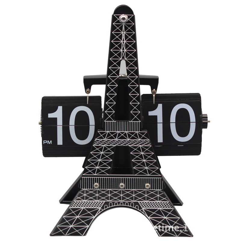 Bike white page-turning bell German double teeth wheel hollowed-out clock single foot black page-turning clock single foot white page-turning clock telescopic drawbar scales automatic page-turning bell Eiffel Tower Page