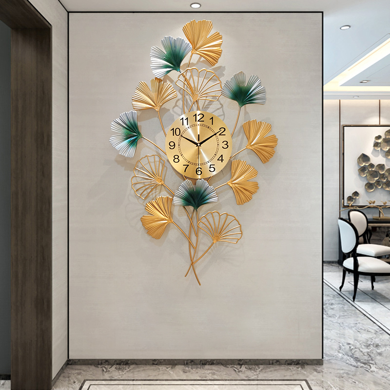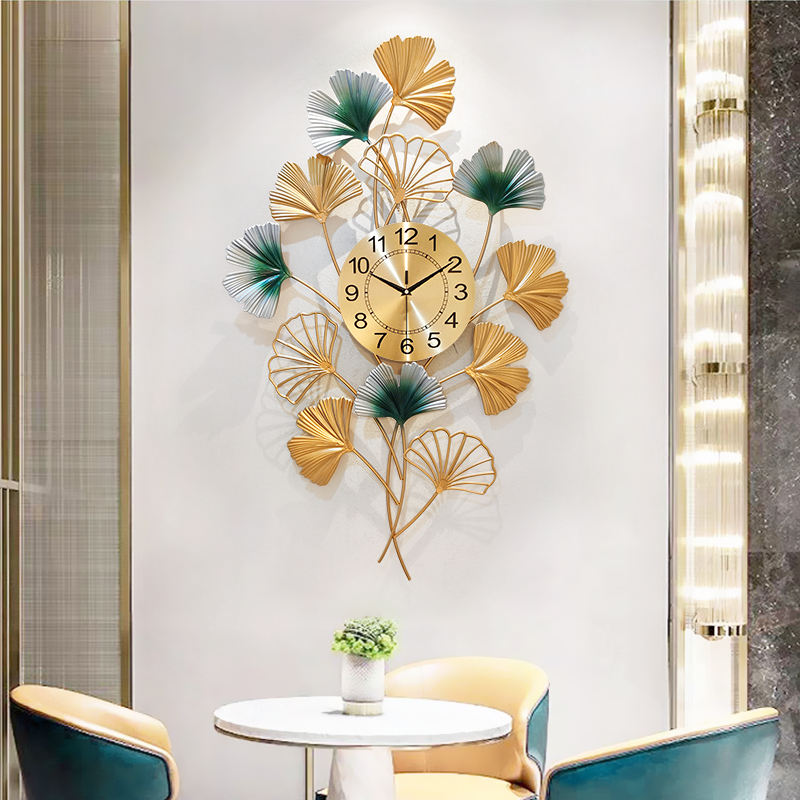 Watch and watch Living room New Chinese style Ginkgo Leaves style Light Luxury Creativity Home Fashion Hanging table Wall Decorative Clock