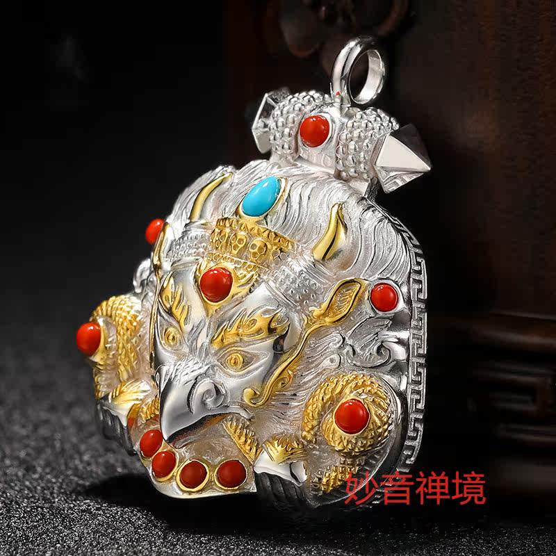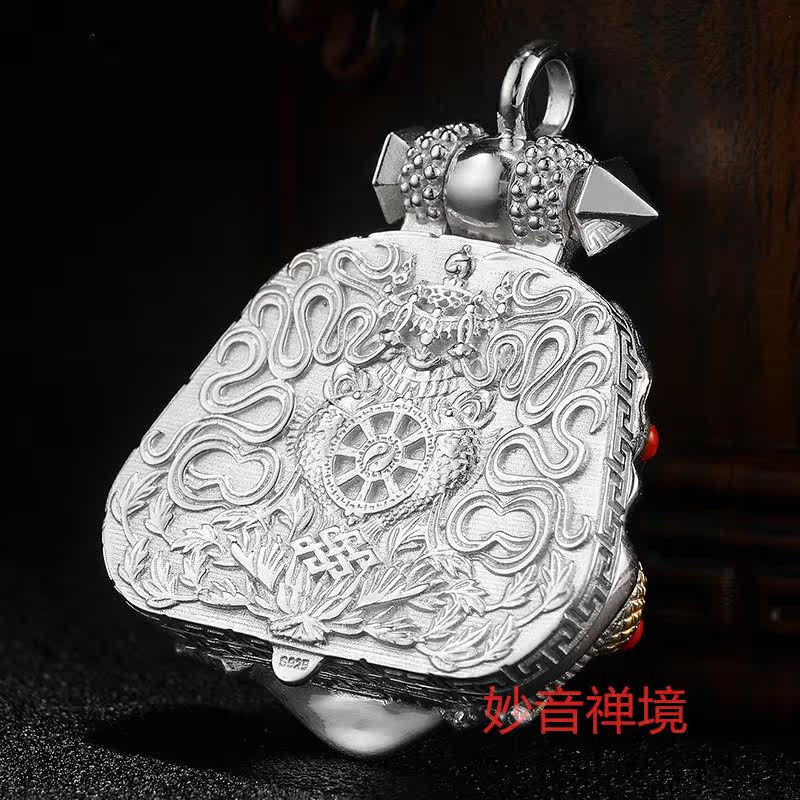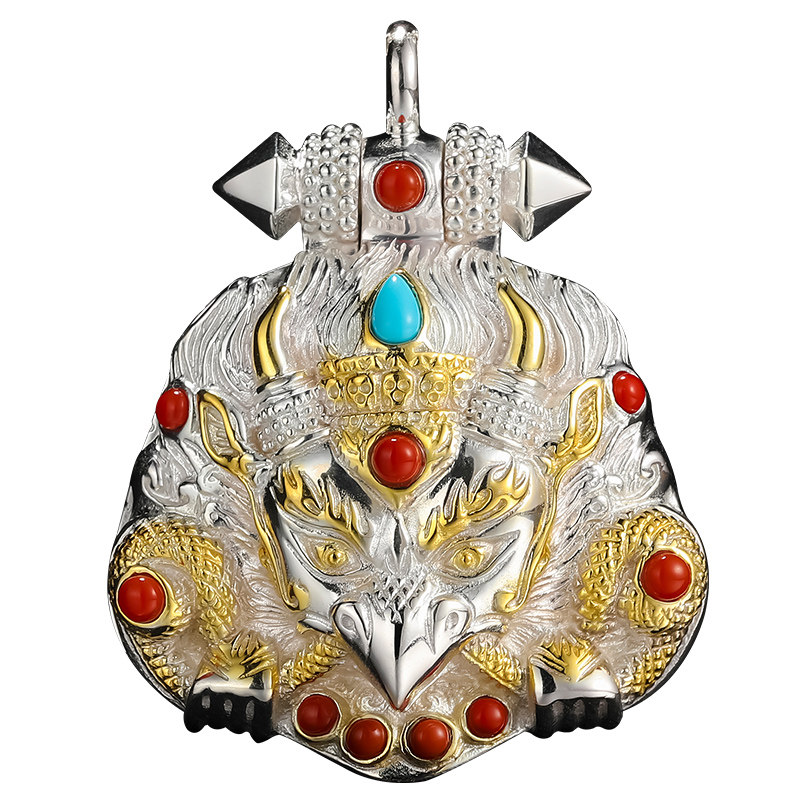 s925 S925 Gawu box pendant Pengpeng gold wings bird gawu box with a shrine pendant inlaid with southern red and green pine
