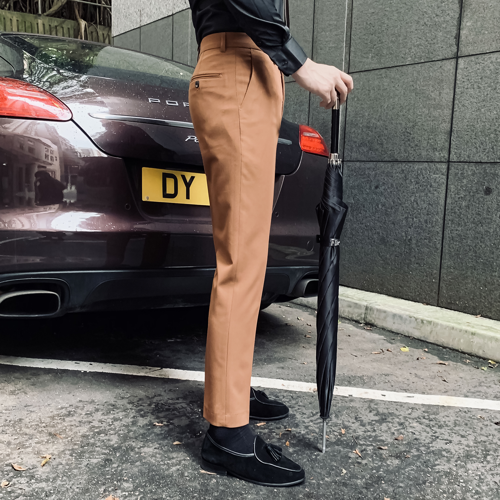 (DAIO MENS) Korean men's casual pants caramel colored youth small-footed pants to be removed from ironing Inlensey pants