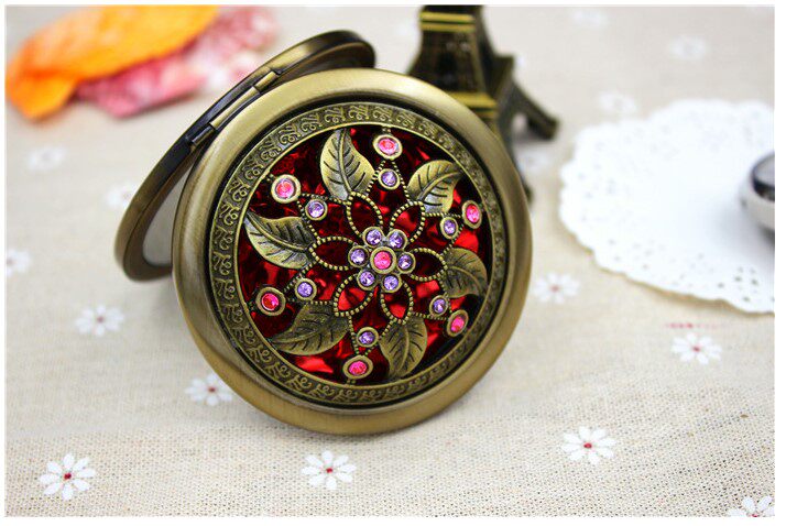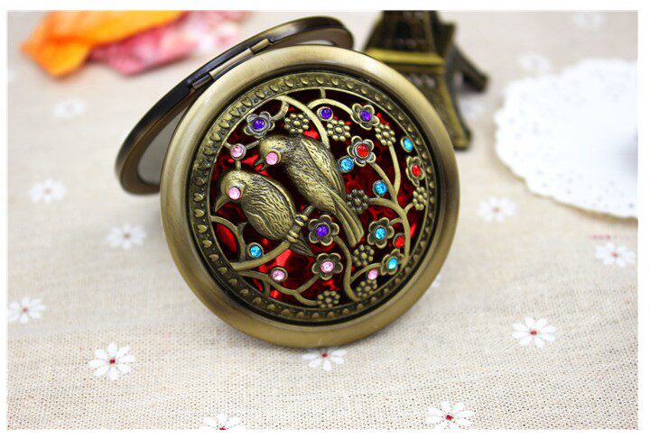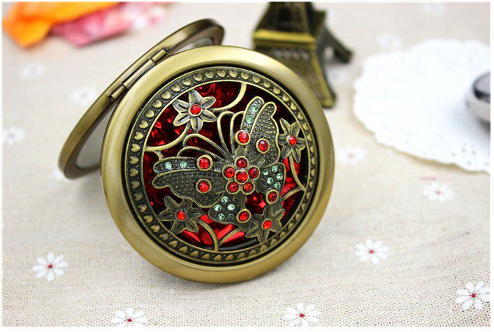 Antique hollow-out rhinestone mirror folding makeup small mirror portable photo customized DIY birthday holiday gift