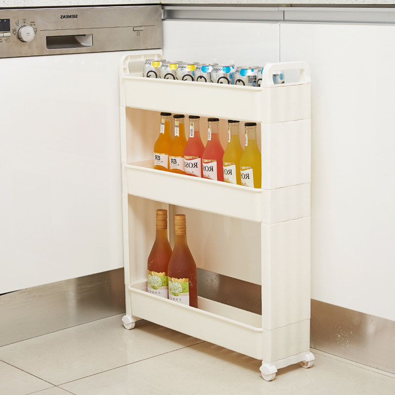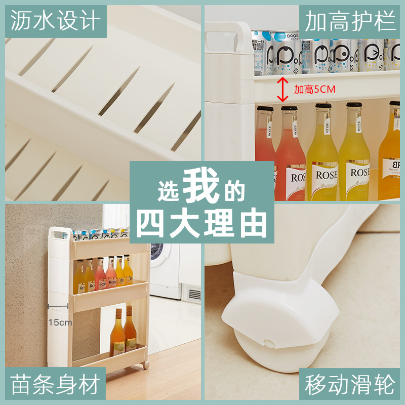 Kitchen shelf Household indoor living room refrigerator side storage shelf Slit shelf Bathroom mobile storage basket