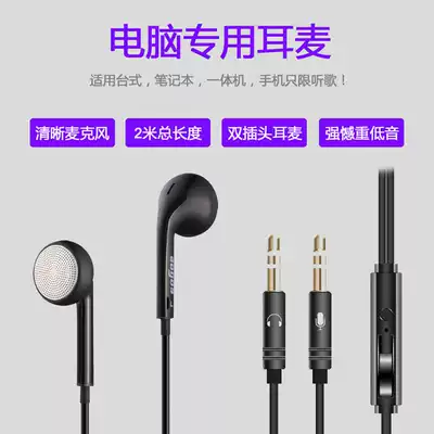 Desktop computer HIFI headset half-in-ear 2 M ultra-long cable dual plug extension cable with microphone e-sports live game special headset sound quality super high quality high sound quality