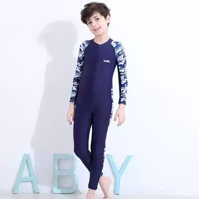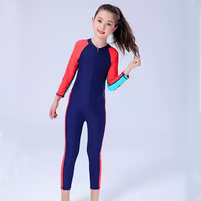 Boys and girls one-piece long-sleeved trousers sunscreen swimwear professional training