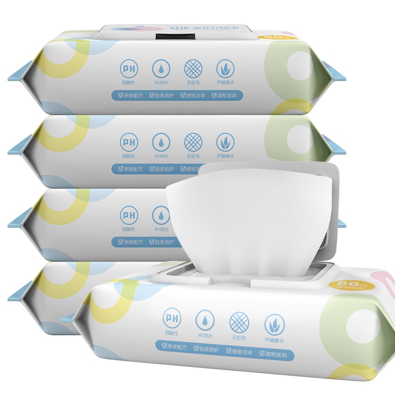 Plant protection baby wet wipes 80 pumping of newborn baby bracelet special fart wet paper towel 5 large bag of affordable clothing