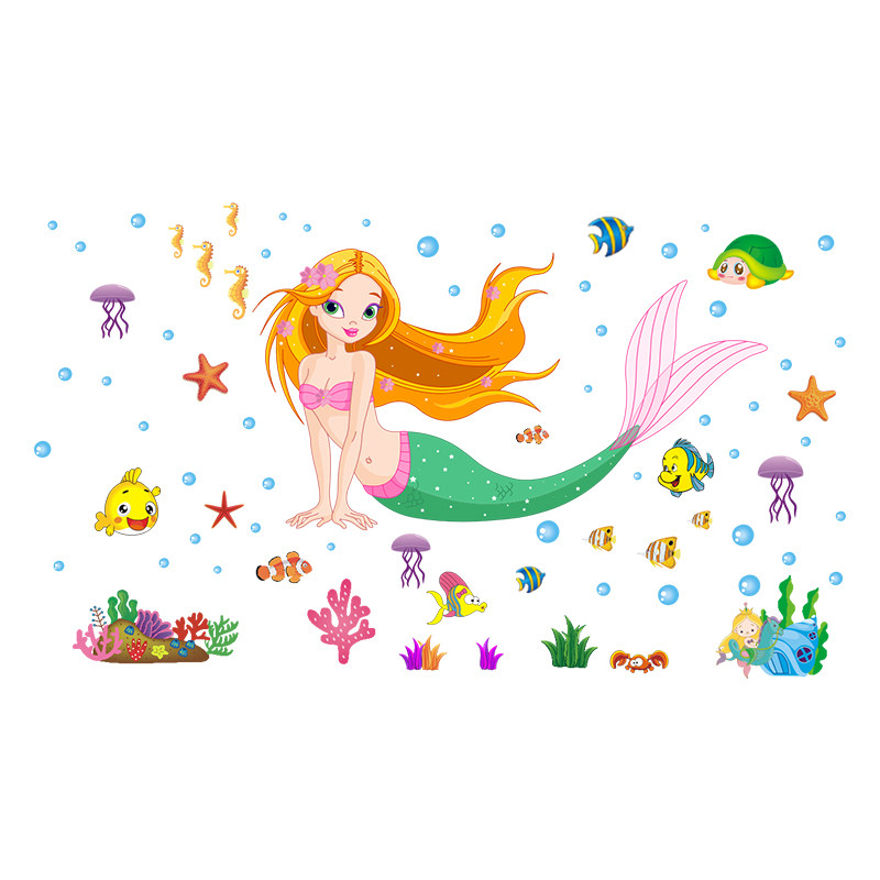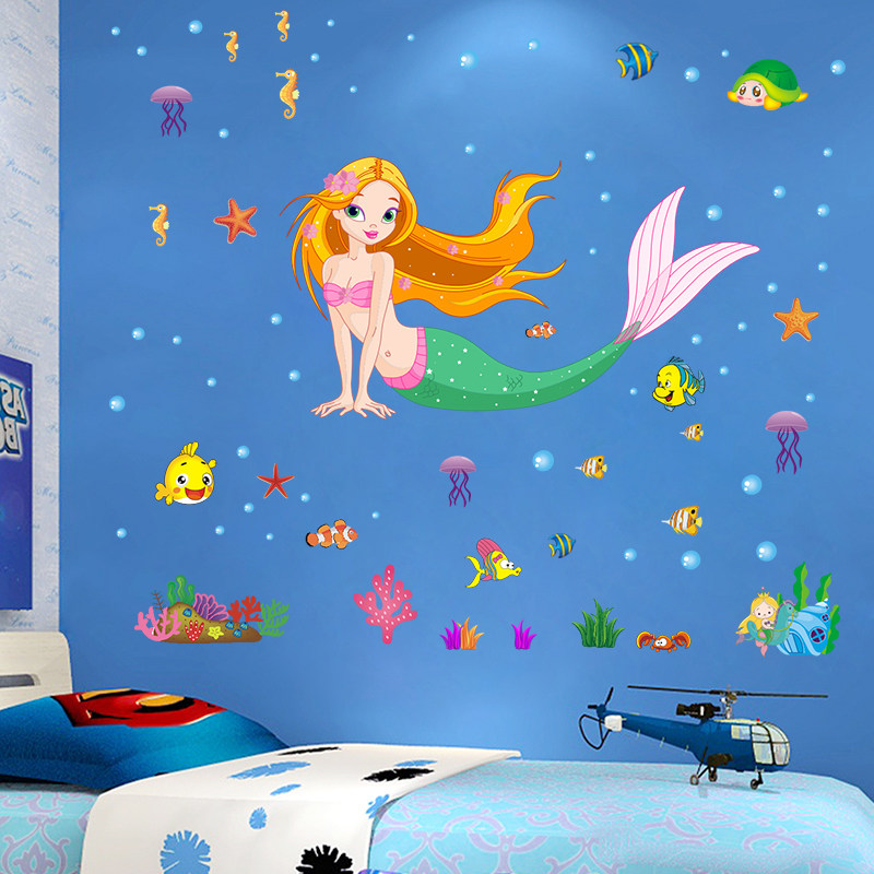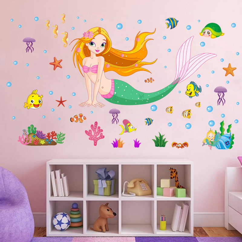Kindergarten cartoon wall stickers children's room cute girl bedside stickers mermaid wallpaper removable waterproof stickers