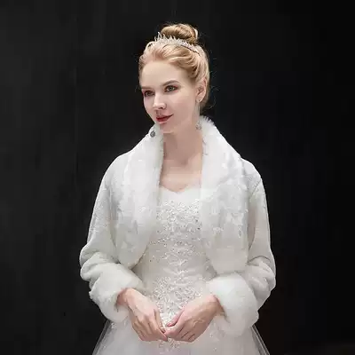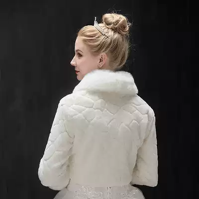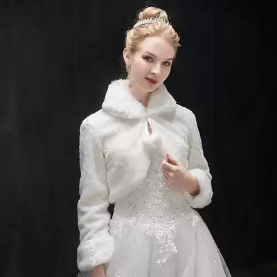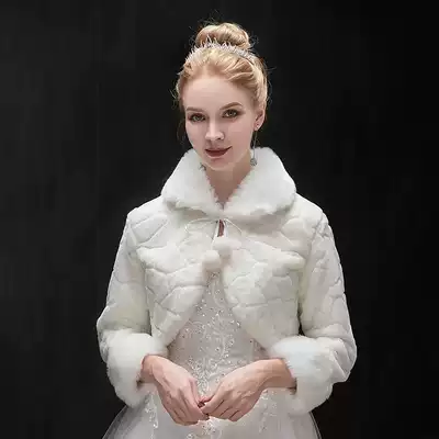 New bridal wedding dress wool shawl autumn and winter long-sleeved Korean cheongsam thickened warm wedding jacket white and red