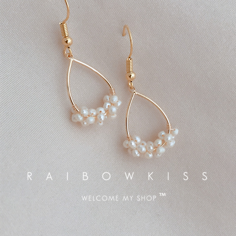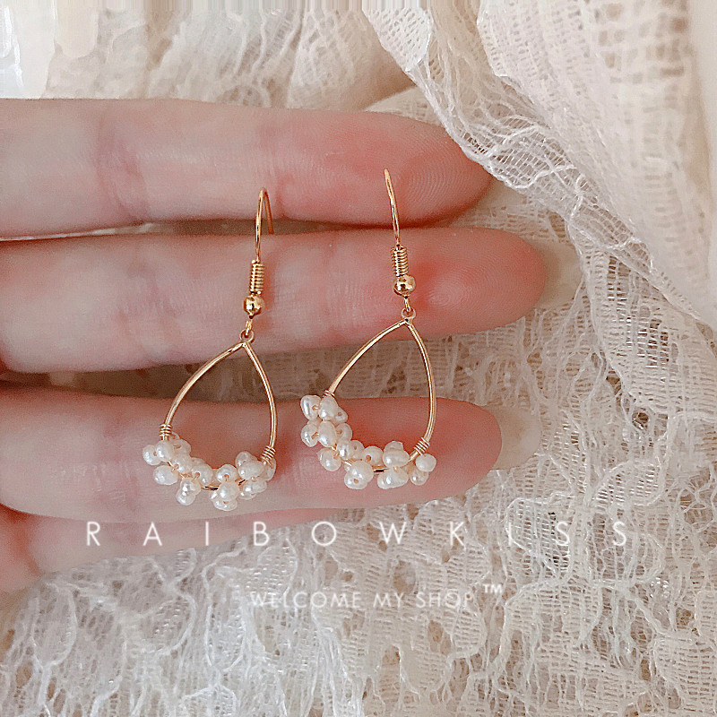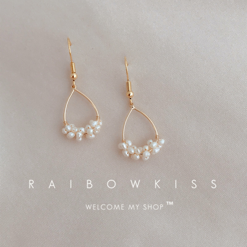 Pearl flower basket handmade 18k gold natural freshwater pearl winding cold wind lace pendant earrings earrings women