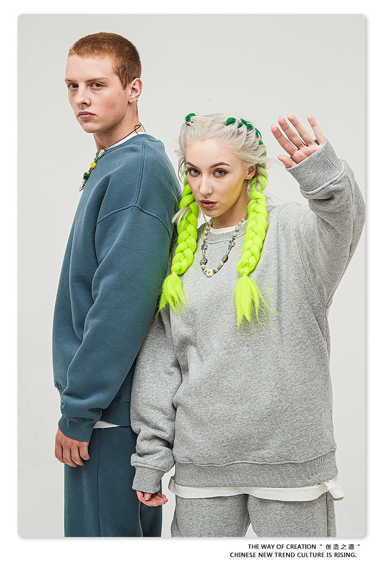 (Ropera Cooperative) 2021 Autumn Winter New 330g Plus Suede Pure Color Loose Round Collar Tide Card Necropolis Lovers