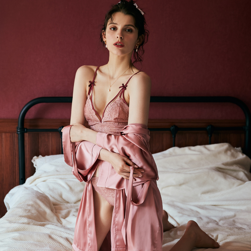 Japanese-style nightgown women's thin summer ice silk sexy pajamas Show tease bathrobe Bride morning robe Wedding Bridesmaid wedding