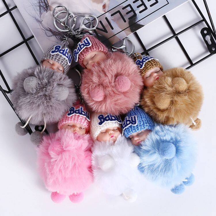 Korean creative pendant sleeping cute sleeping doll cute car female keychain bag pendant plush keychain