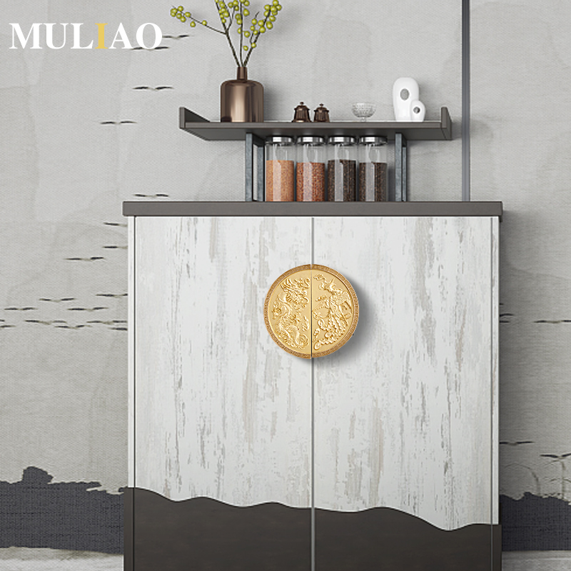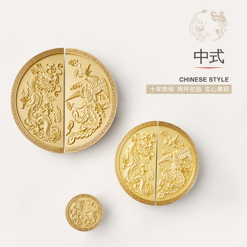 Brass handle cabinet door new Chinese classical light luxury pure copper chest cabinet wine cabinet golden semicircle drawer handle