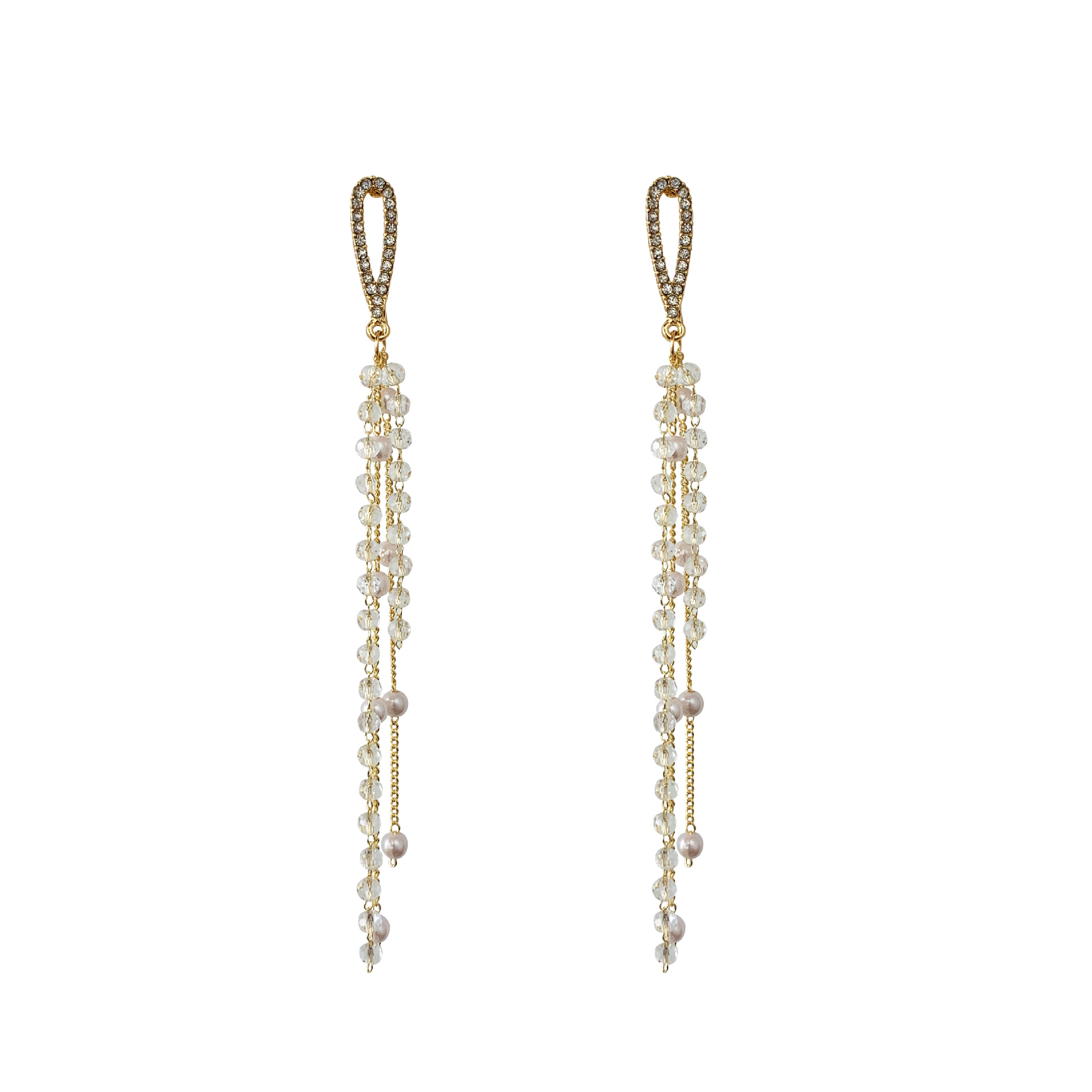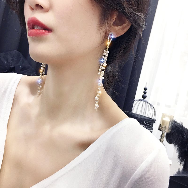 Suitable for face Korean temperament long crystal earrings high-sensitive super-fairyline Su ear crash red ear nail ear jewelry