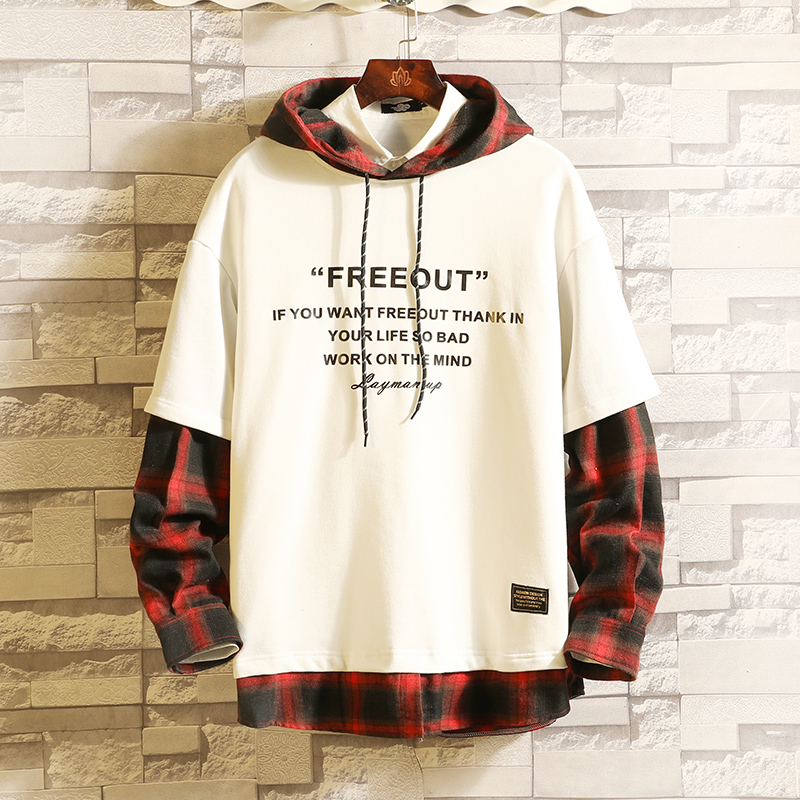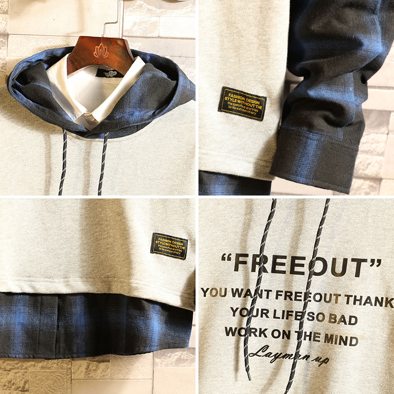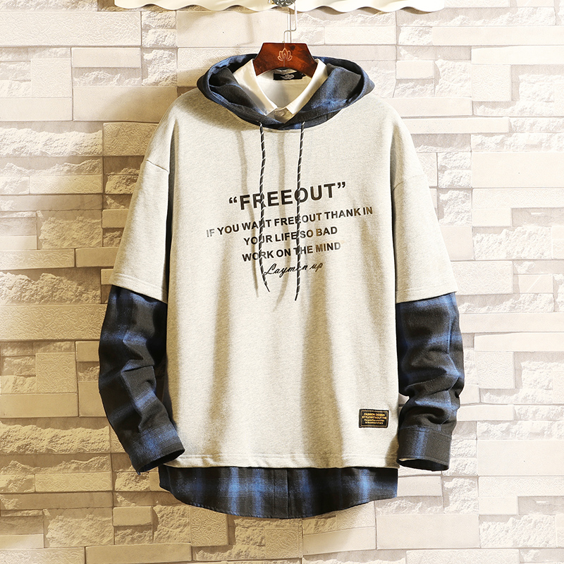 Spring and autumn long sleeve thick cotton T trend fake two men's autumn hoodie Japanese large size fat plaid casual top