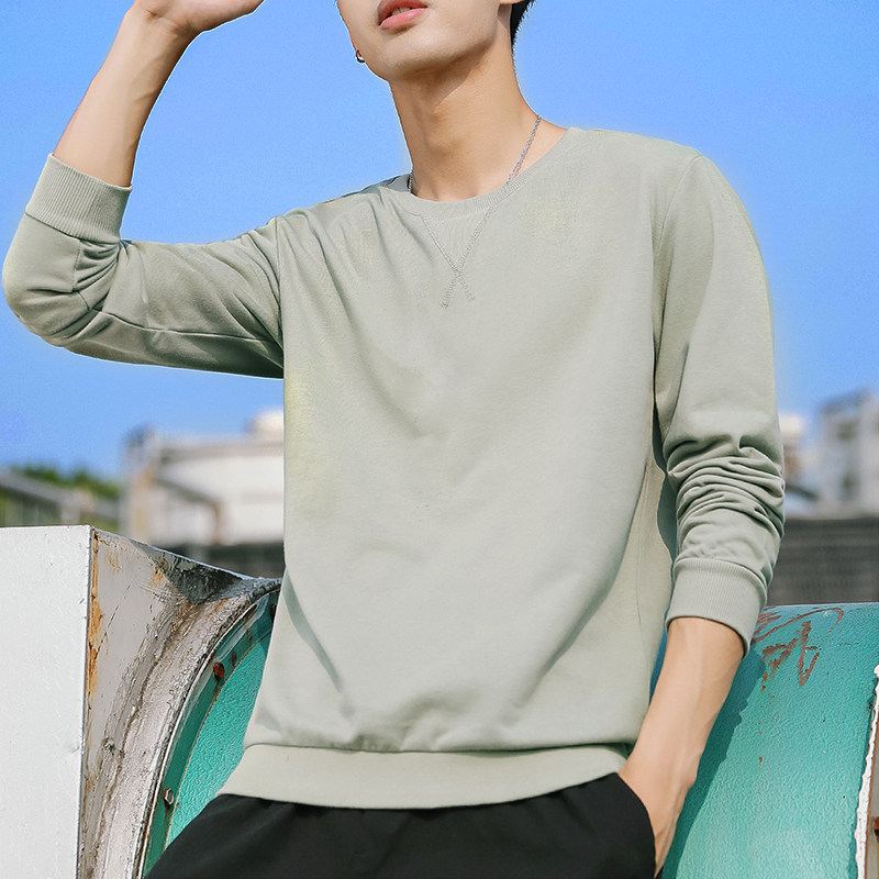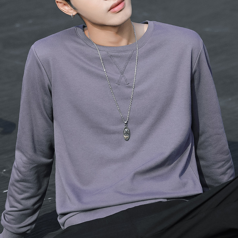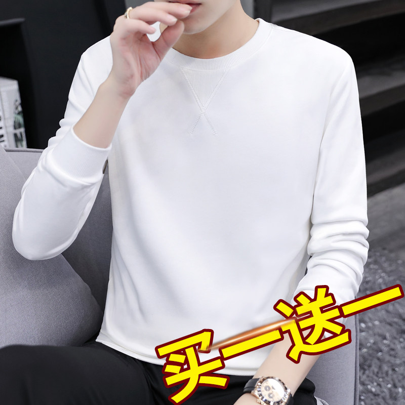 Sweater men's pullover round neck long sleeve solid color white sports thin section trend casual loose T-shirt base small shirt