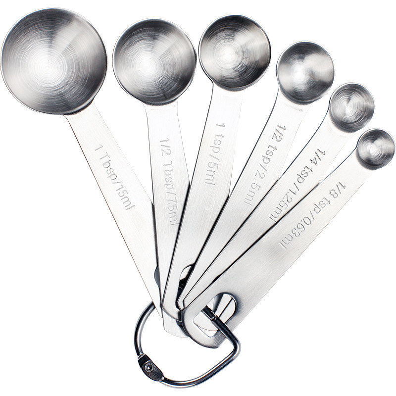 304 stainless steel measuring spoon 6-piece set Kitchen gram scale measuring spoon Baking household control salt spoon Milk powder spoon