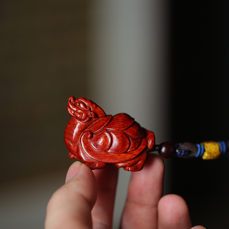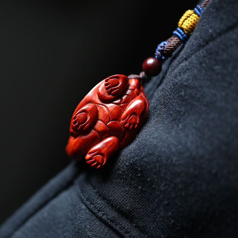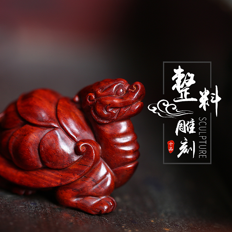 Indian leaflet red sandalwood money turtle handle play pieces Pure hand carved wooden handle pieces Wen play handicraft decoration