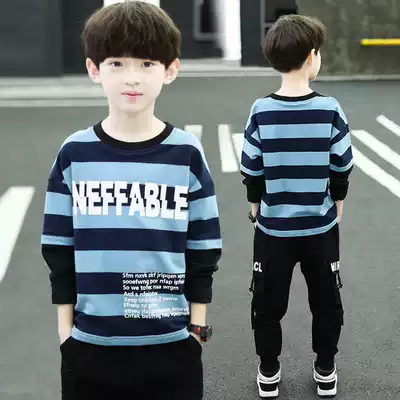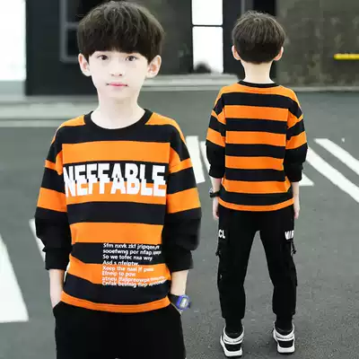 Boys' autumn suit 2021 new children's foreign style stripes two-piece set of children's tide clothes boys Korean handsome