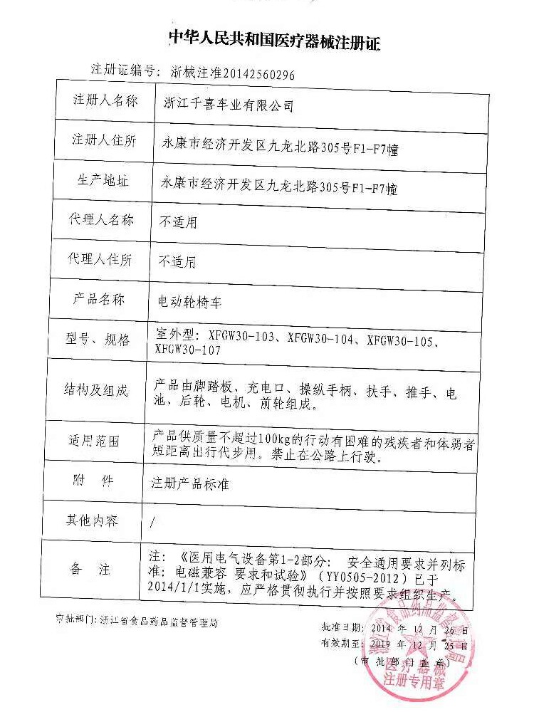 YZB 4497-2014 "Electric Wheelchair Car"