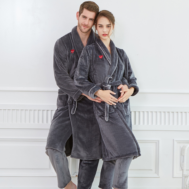 Japanese dressing gown female winter coral velvet thickened long flannel sexy couple style large bathrobe pajamas