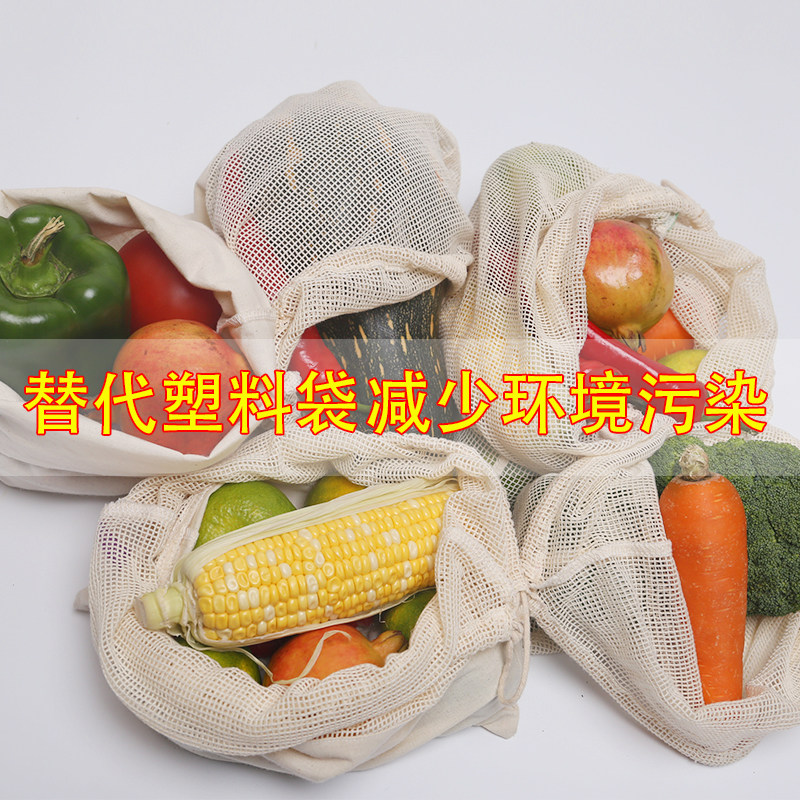 Eco-friendly pure cotton Buy food Cloth Bag Fruit Food Breathable Mesh Bag Pumping Rope Bunches Containing Classified Cloth Bag Sub Supermarket