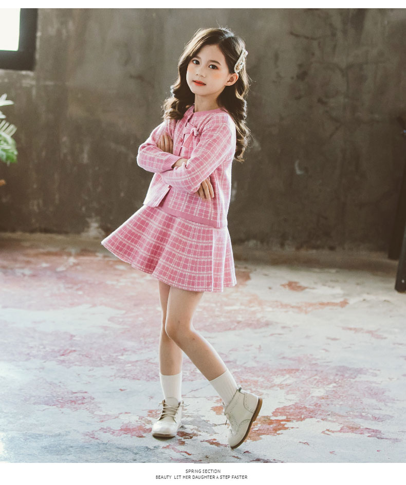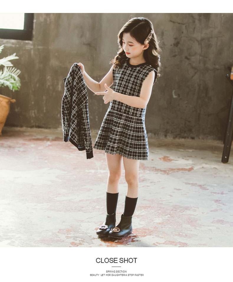 South Korea 2022 Qiushi girl's small fragrant name Yuanyuan Temperament Suit Black And White Plaid and Dress Foreign Pie 2 sets