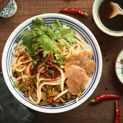 Rice flour bag brine package with barbecued pork bag sour bean sauce wrapped with chopped green onion (see packaging for details)