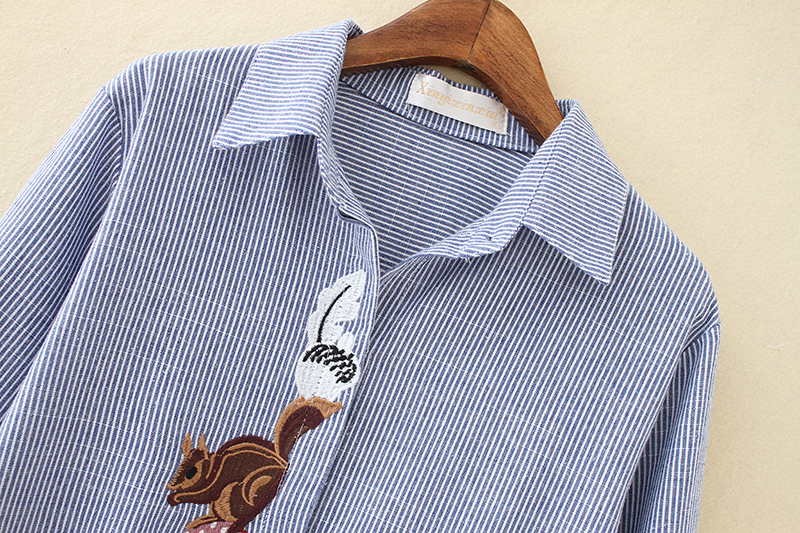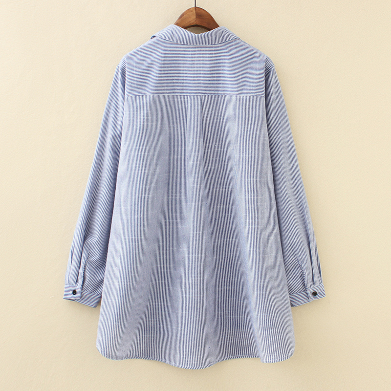 Fat Mm Fall New 2022 Shade Easy Blouse Large Size Women's Dress 200 Catty Embroidered Medium Long Version Striped Shirt