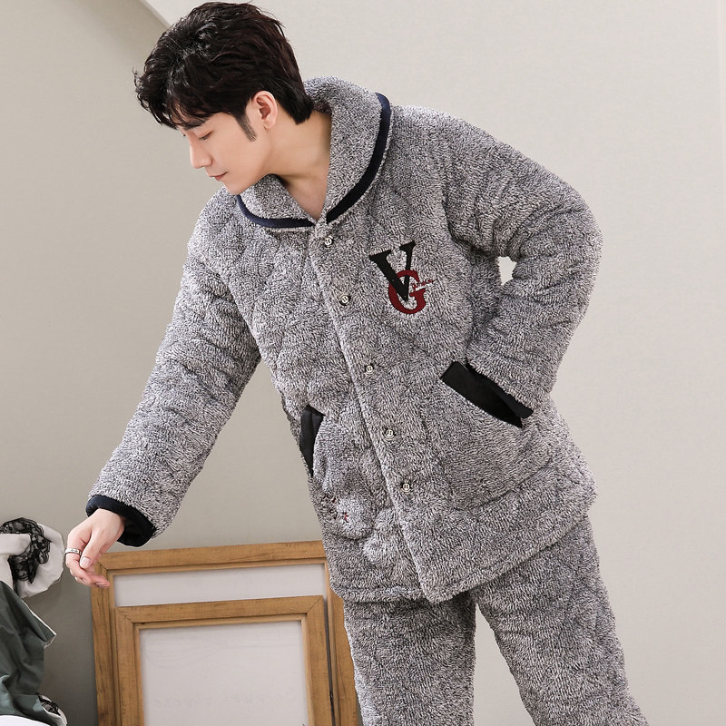 Sleepwear Male Winter Thickened Cotton Triple Clip Cotton Coral Suede Autumn Winter men's flannel Flannel Sumpsuit Warm