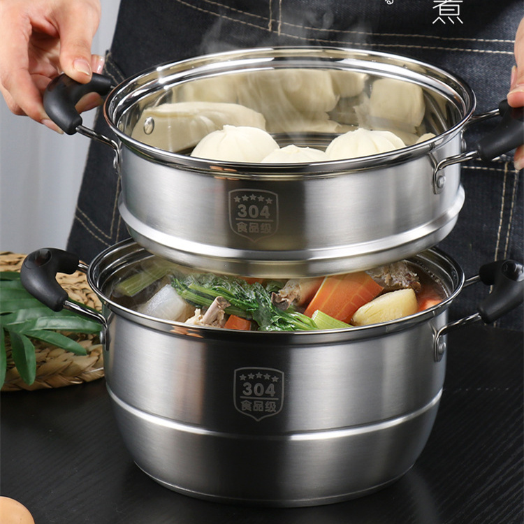 Home food grade 304 stainless steel double layer small steam pot baby Deputy food thickened rebase steam stockpot 2 people with a rebase