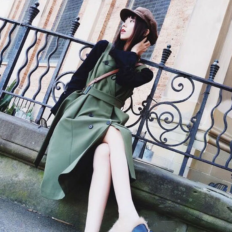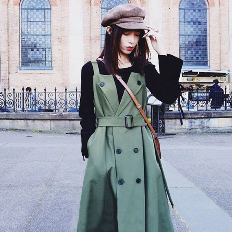Green (literary style suit female small man dress net red Ocean school goddess spring and Autumn fashion)