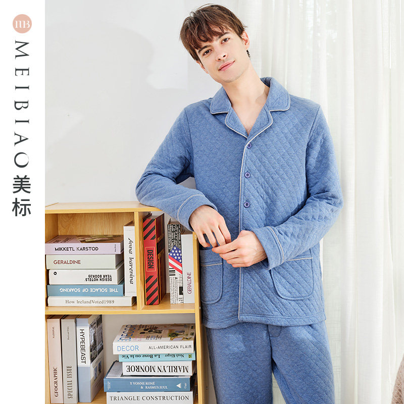 American triple layer thickened warm paving cotton pyjamas suit men's autumn and winter full cotton quality pure cotton can be worn outside the home