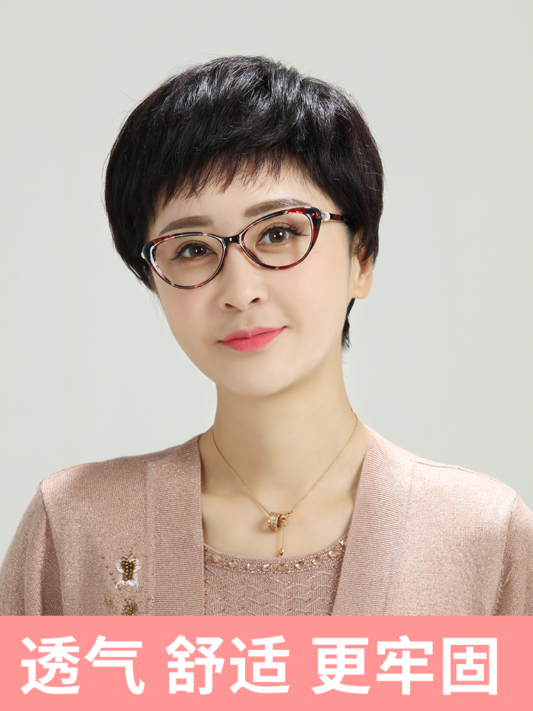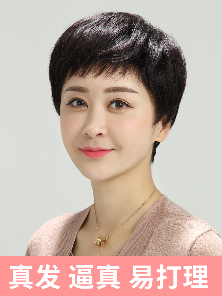 Middle-aged and elderly wig hair female short hair real hair mother hood top full real hair silk natural lady short roll real hair fake hair