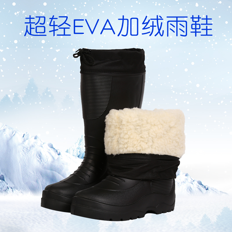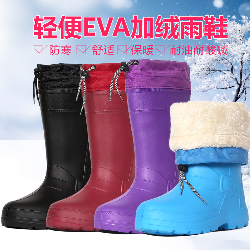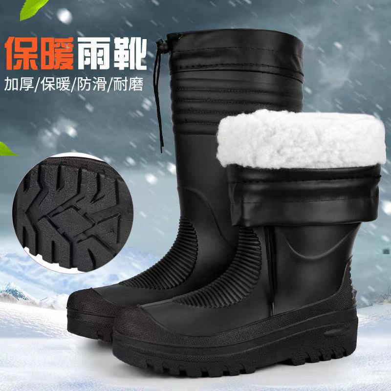 Rain Shoes Male High Cylinder Rain Boots Lady Midlength Silo Plus Suede Water Boots Water Shoes Thick Bottom Non-slip Waterproof Warm Rubber Shoes Cover Shoes-Taobao