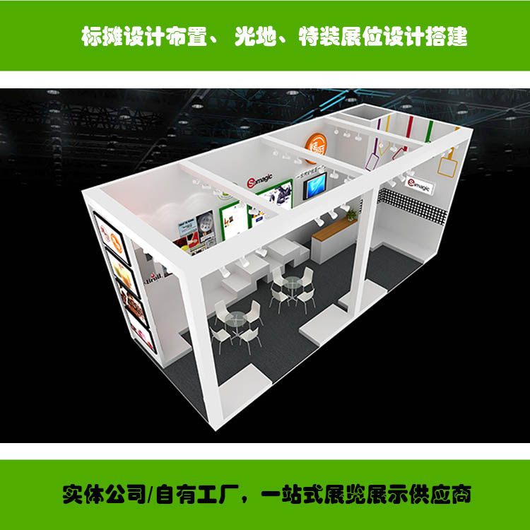 Three-sided opening booth design and arrangement Shanghai exhibition construction Wood structure booth production and installation