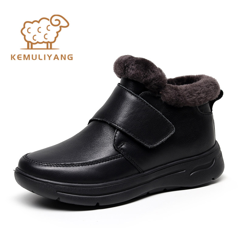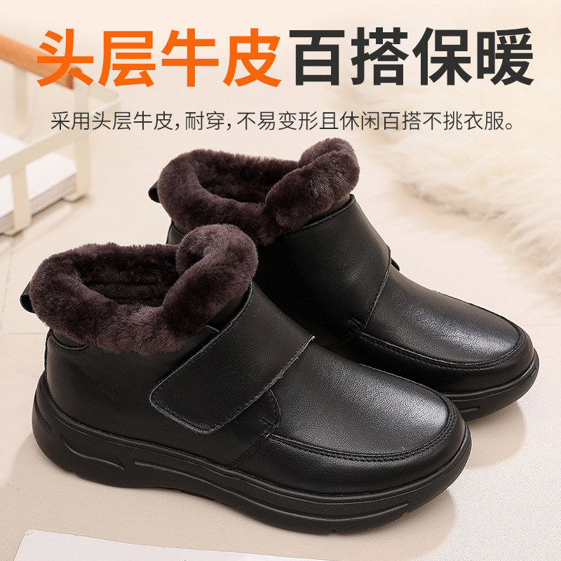 Mom's cotton shoes women's shoes winter middle-aged and elderly fur all-in-one plus velvet thickening warm shoes leather wool elderly leather shoes