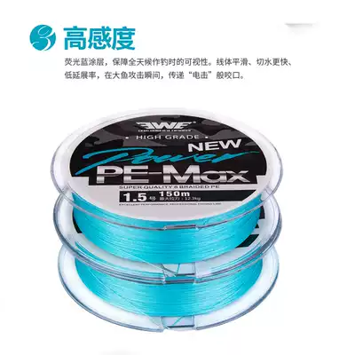 EWE Meixia Longtou PE-MAX line imported raw silk 8 braided 150 meters to strengthen the tension fluorescent blue Luya line