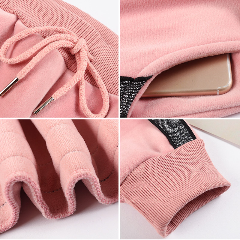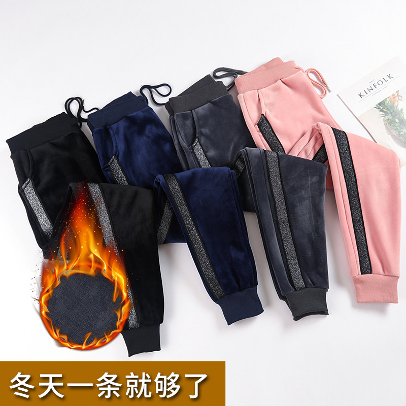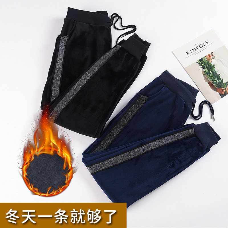 Plus velvet thick sports pants women's autumn and winter students double-sided velvet beam foot guard pants gold velvet loose casual harem pants