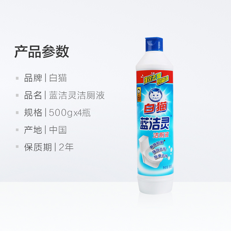 White Cat Clean Toilet Hearty Toilet Deodorant Toilet Detergent Powerful de-scaling Home Toilet Lotion 500g * 4 Bottles Affordable
