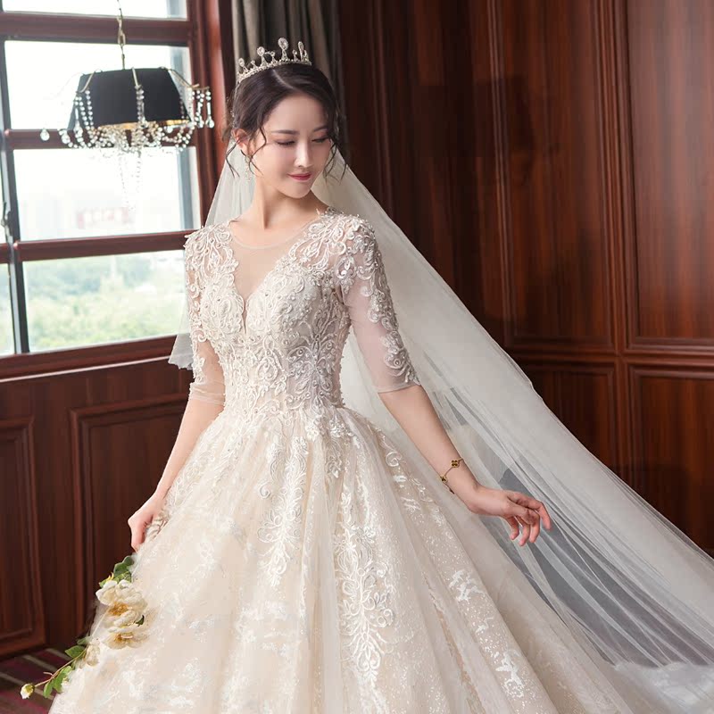 Main wedding dress 2020 new bridal sensuo superfairy dreamy trailing minimalist Long sleeve Star Extravagant Light Wedding Dress