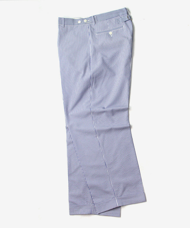 High-end expensive brand B Japanese fabric cool and breathable seersucker Paris buckle loose straight nine-point trousers