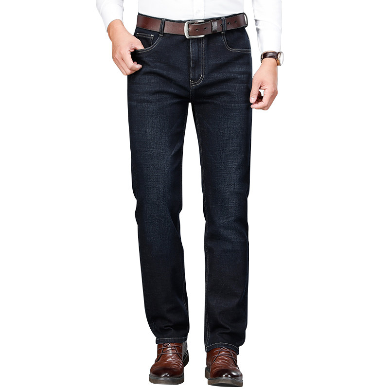 International big name autumn and winter jeans men's loose straight business high waist elastic middle-aged casual big size men's pants
