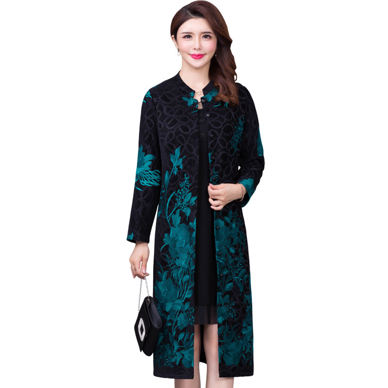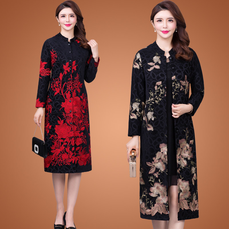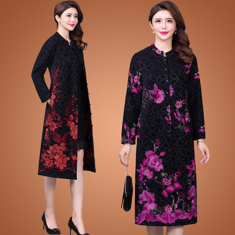 Spring and autumn clothes 2022 new wind clothes women with long version of lace embroidered ethnic wind large size and mother clothing thin single coat