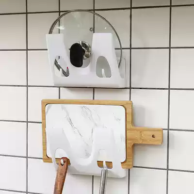 Creative wall-mounted non-perforated kitchen household plastic with adhesive hook plate lid pot drain storage storage layer shelf