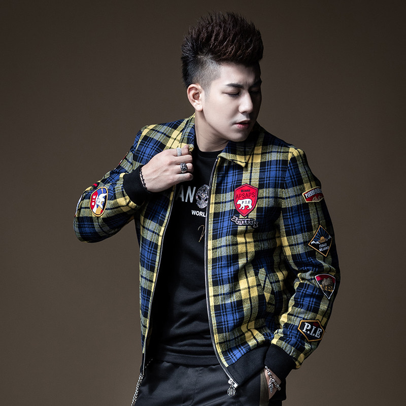 BM Men's Embroidered Checkered pilot cotton jacket jacket male tide card European and American retro street trend Korean version