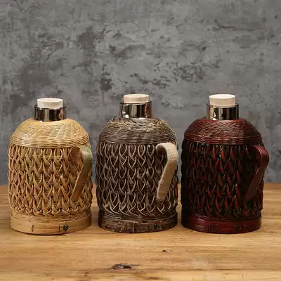 Handmade bamboo hot water bottle shell old-fashioned retro warm pot skin tea bottle warm bottle Kettle Teapot boiling water bottle cover home