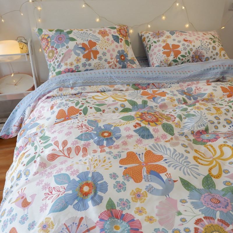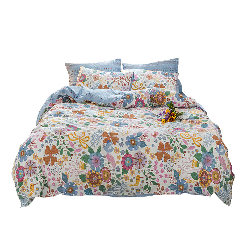 American Fields Garden Small Retro Pure Cotton Four Pieces Fresh Blue National Wind Double Pure Cotton Crushed Flowers Quilt Cover Bed